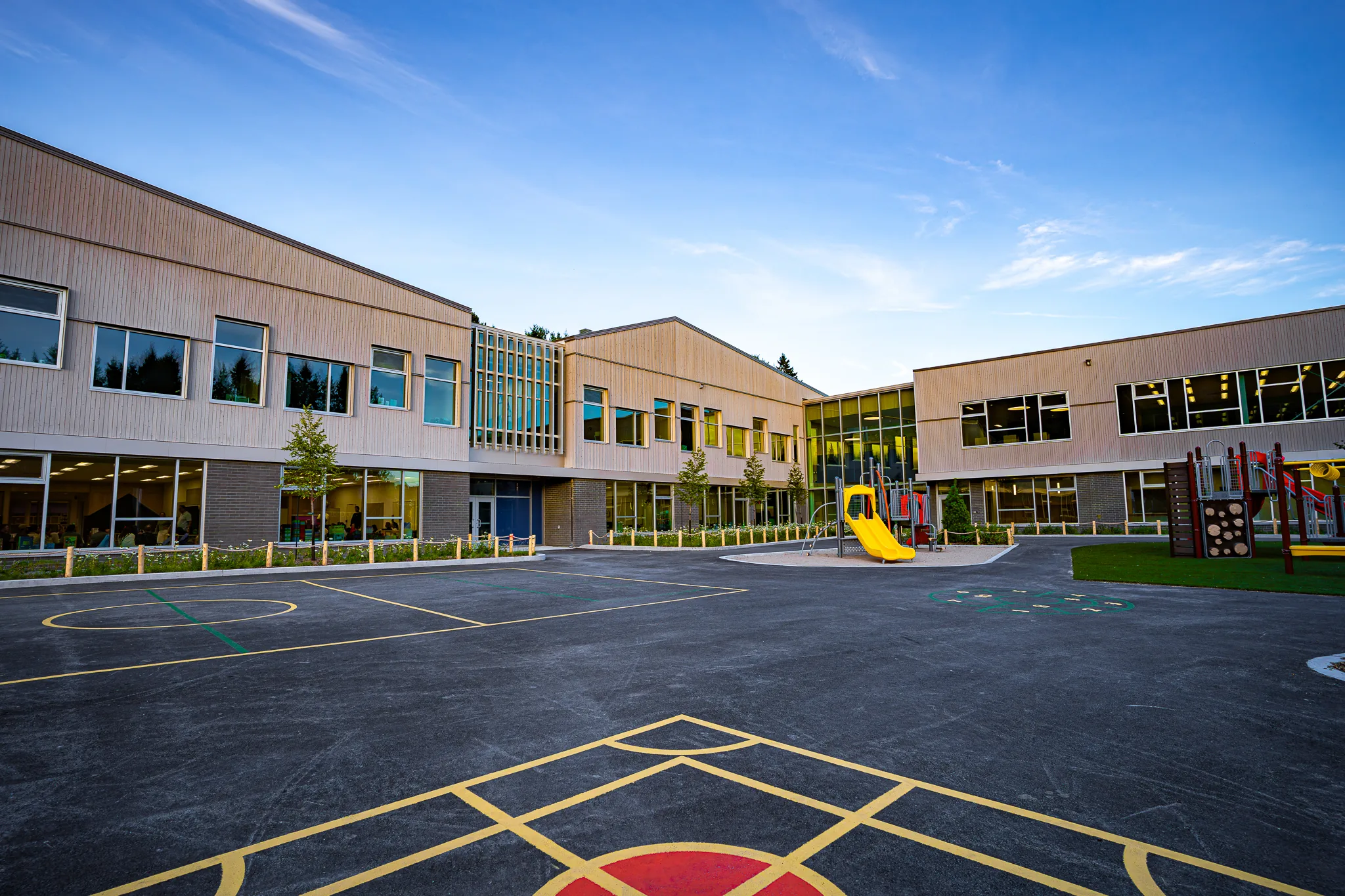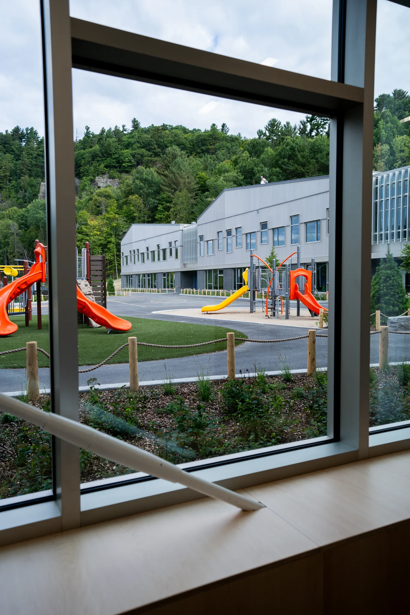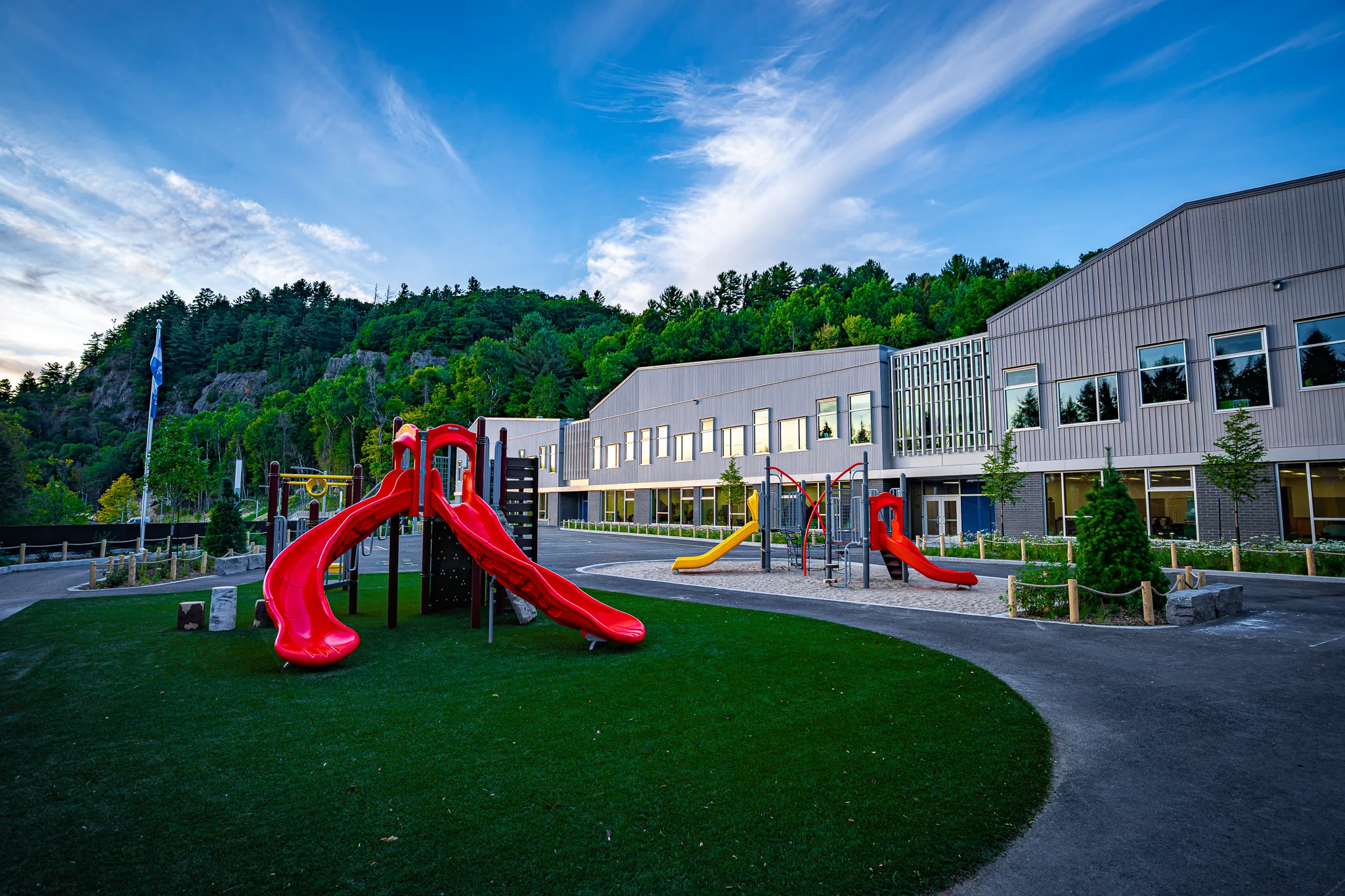 Overizon produced a video of the results for the new school in Saint-Sauveur, captured in less than 24 hours between the delivery of the project and the start of the school year. The project highlights the integration of the building into the natural environment of the Laurentians, especially at the foot of Mount Molson.